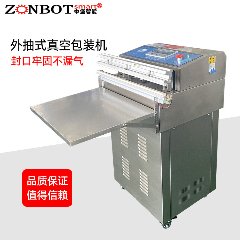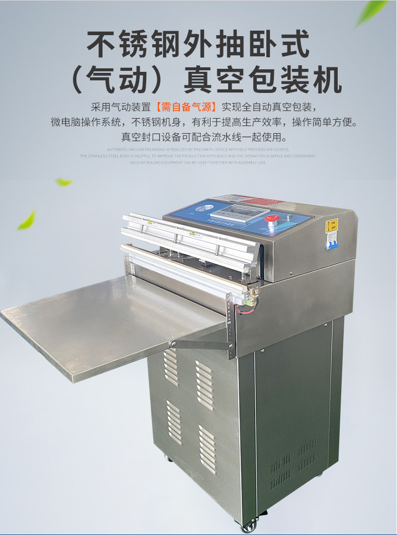 外抽真空包裝機主要通過外部的真空泵來抽取包裝容器(通常是真空袋)內的空