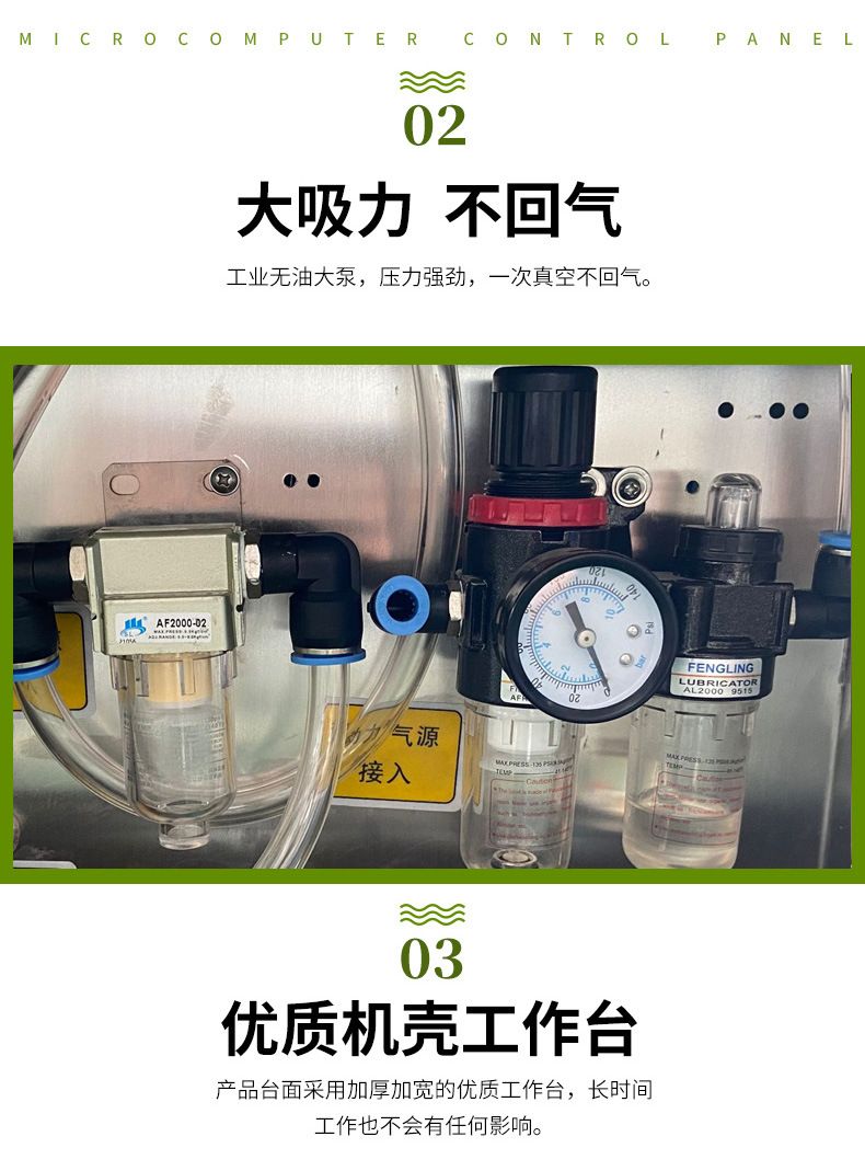 • 操作簡便:其操作過程相對簡單易懂。一般只需要將真空袋的抽氣口與抽氣嘴連接好,設置好相關參數(如真空度和封口參數),然后啟動機器即可完成真空包裝。這種簡單的操作方式使得它在家庭和小型企業中廣泛應用,不需要專業的操作人員進行復雜的培訓。