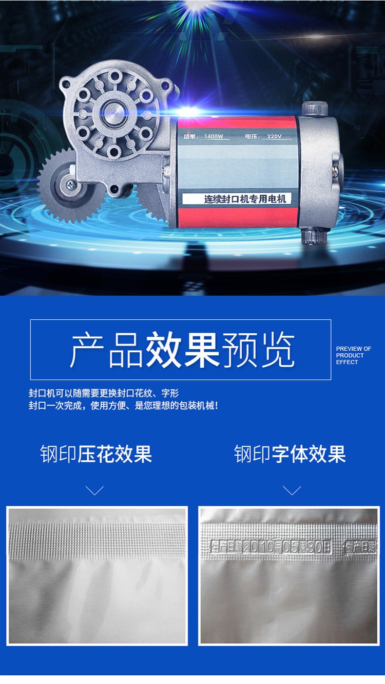 • 穩定的封口質量:憑借精準的溫度、速度、壓力控制,不管是薄如蟬翼的塑料薄膜袋,還是稍厚的復合材質包裝袋,都能保證封口牢固、整齊、美觀,封口一致性極佳,有效減少次品率。