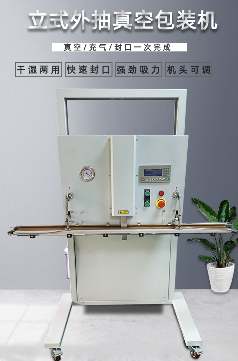 • 適應性強:得益于升降工作臺和立式結構,對包裝物品的形狀、尺寸、重量兼容性極高,解決了傳統固定高度真空包裝機的局限,不管是異形還是超大尺寸產品,都能應對自如。