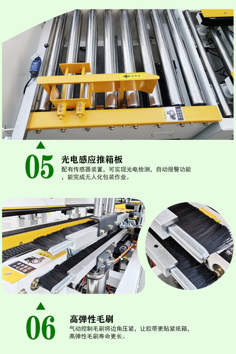 - 封箱效率高:自動化的輸送與封箱流程,能快速連續處理紙箱,相較于人工封箱,大大提高了包裝速度,適合批量生產的企業。
