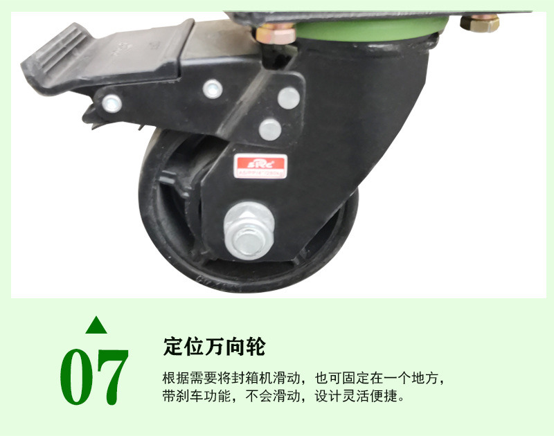 - 封箱機構:分為上部封箱頭與下部封箱頭,各自配備有膠帶座、壓帶輪、加熱裝置、刀片等組件。膠帶座用來放置膠帶卷,壓帶輪負責輸送膠帶,加熱裝置激活膠帶黏性,刀片則在封箱結束時切斷膠帶。