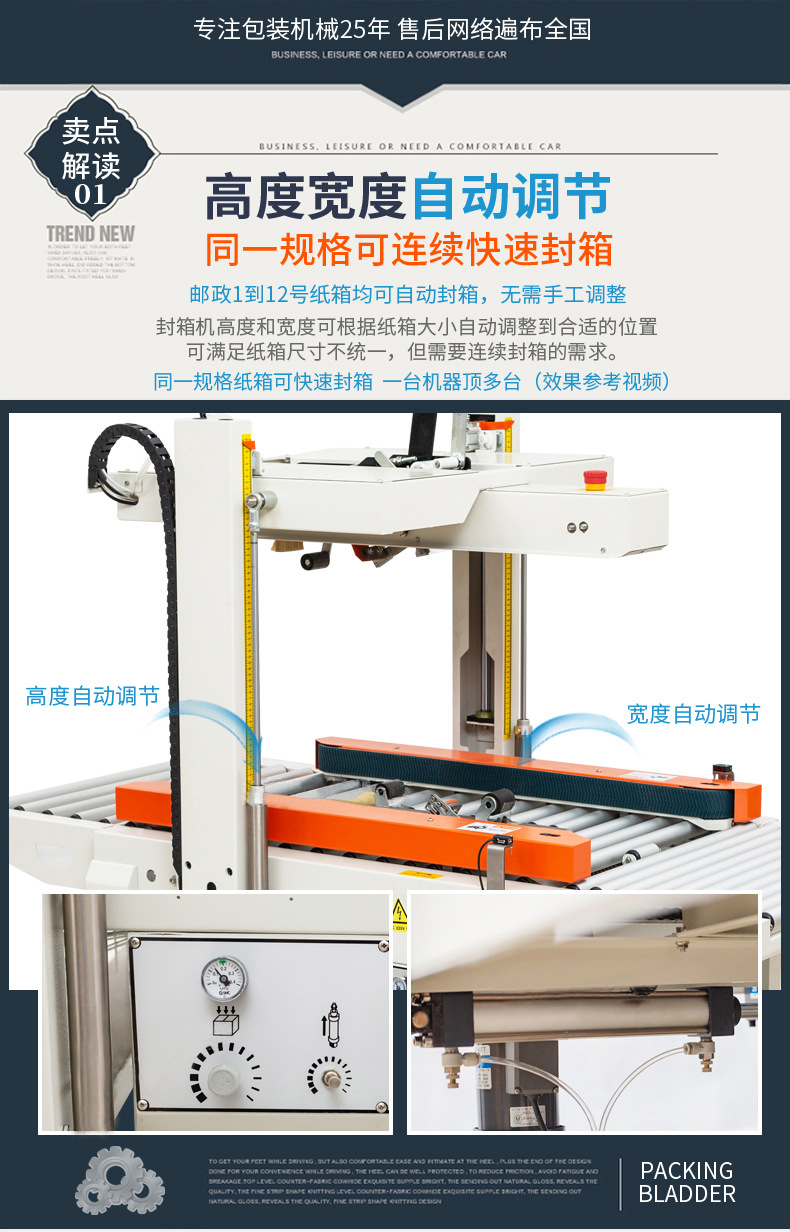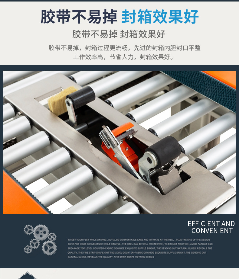 - 啟動封箱機:開啟封箱機的電源開關,啟動輸送帶和封箱裝置。輸送帶會帶動紙箱向前移動,當紙箱到達封箱位置時,封箱機的膠帶分配器會自動將膠帶粘貼在紙箱的封口處,并通過壓合裝置將膠帶壓合牢固,完成封箱操作。