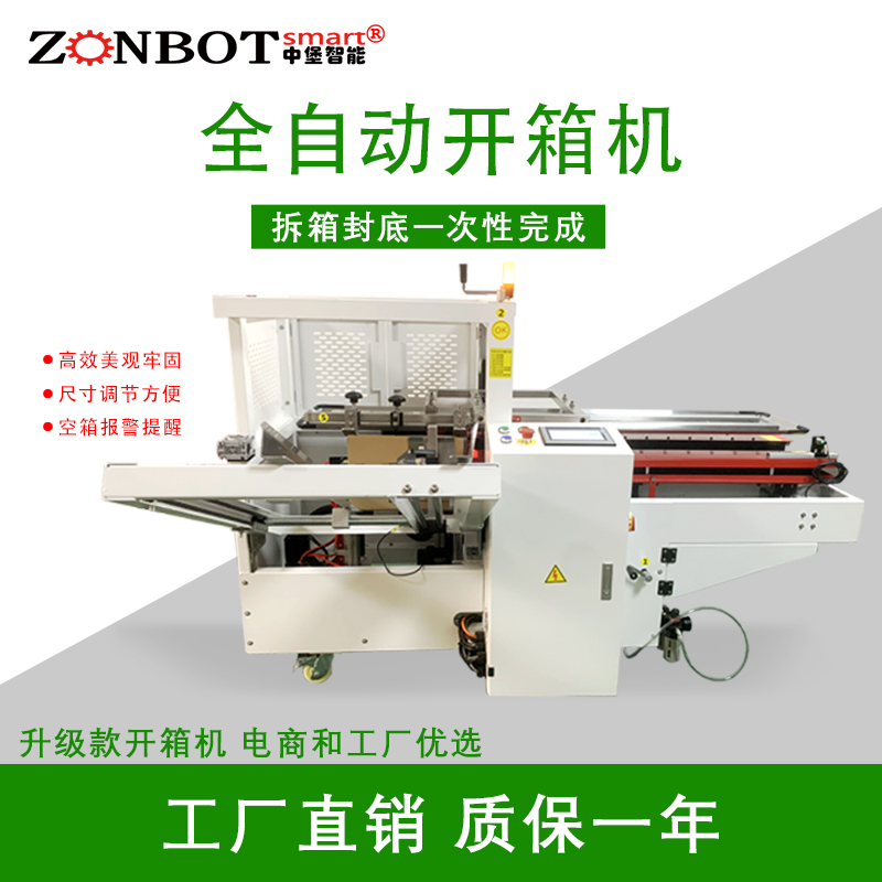 - 自動開箱:設(shè)備啟動后,開箱機構(gòu)開始工作。吸盤吸附紙箱坯料的側(cè)面,通過機械動作將其拉開成紙箱形狀,撐箱臂在開箱過程中起到支撐和定型的作用,確保紙箱能夠順利打開并保持形狀。整個開箱過程由設(shè)備自動完成,無需人工干預(yù)。