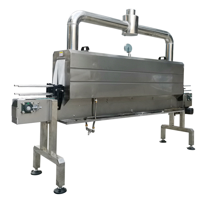 其工作流程通常是先將產品放入經過預先處理的包裝材料中,然后通過輸送裝置將其送入充滿高溫蒸汽的收縮室。在蒸汽的作用下,包裝材料迅速收縮并緊密貼合在產品表面。