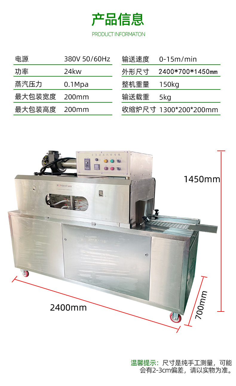 - 功率:不同型號的蒸汽收縮機(jī)功率有所不同,一般在一定數(shù)值范圍內(nèi)。