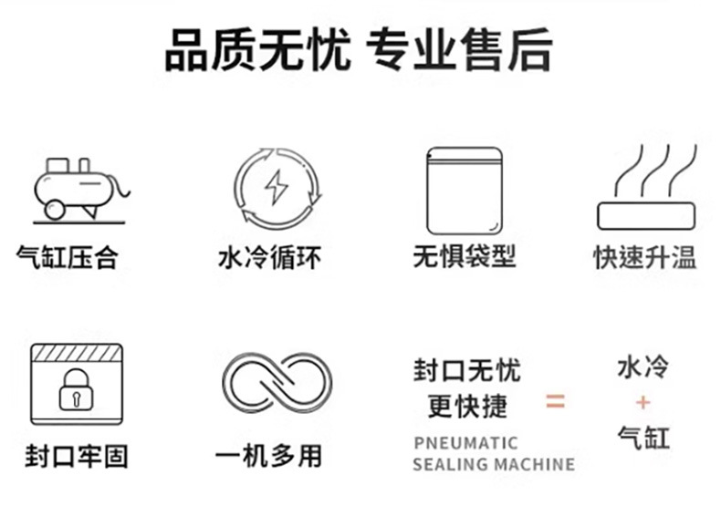• 普通熱封機的封口質量受環境溫度和包裝速度影響較大。水冷封口機則可以通過精確控制水冷參數,在不同的環境溫度和包裝速度下,都能保持較為穩定的封口質量。
