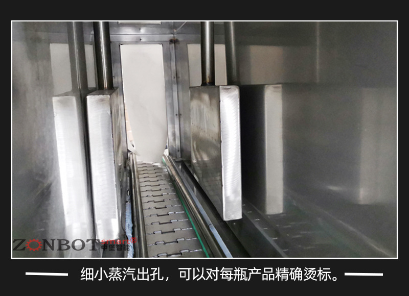 - 蒸汽加熱收縮:當(dāng)物品被薄膜包裹后,隨著輸送帶的移動,進入蒸汽加熱區(qū)域。在這個區(qū)域,通過蒸汽發(fā)生裝置產(chǎn)生的蒸汽會噴灑或籠罩在薄膜包裹的物品上。蒸汽攜帶的大量熱量傳遞給薄膜,使薄膜分子鏈發(fā)生運動,進而導(dǎo)致薄膜開始收縮,緊密地貼合在物品表面。在蒸汽加熱過程中,需要控制好蒸汽的溫度、壓力以及輸送帶的速度等參數(shù),以確保收縮效果良好且不會對物品造成損壞。