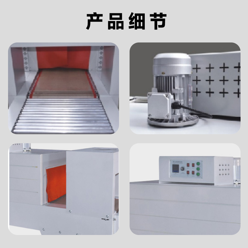 • 輸送速度:輸送速度決定了產品在加熱通道內的停留時間,從而影響薄膜的收縮效果。輸送速度一般在 0.5 - 10 米 / 分鐘之間可變。對于大型、復雜形狀或需要充分收縮的產品,通常會采用較慢的輸送速度,以保證足夠的加熱時間;而對于小型、簡單形狀的產品,可以適當提高輸送速度來提高包裝效率。