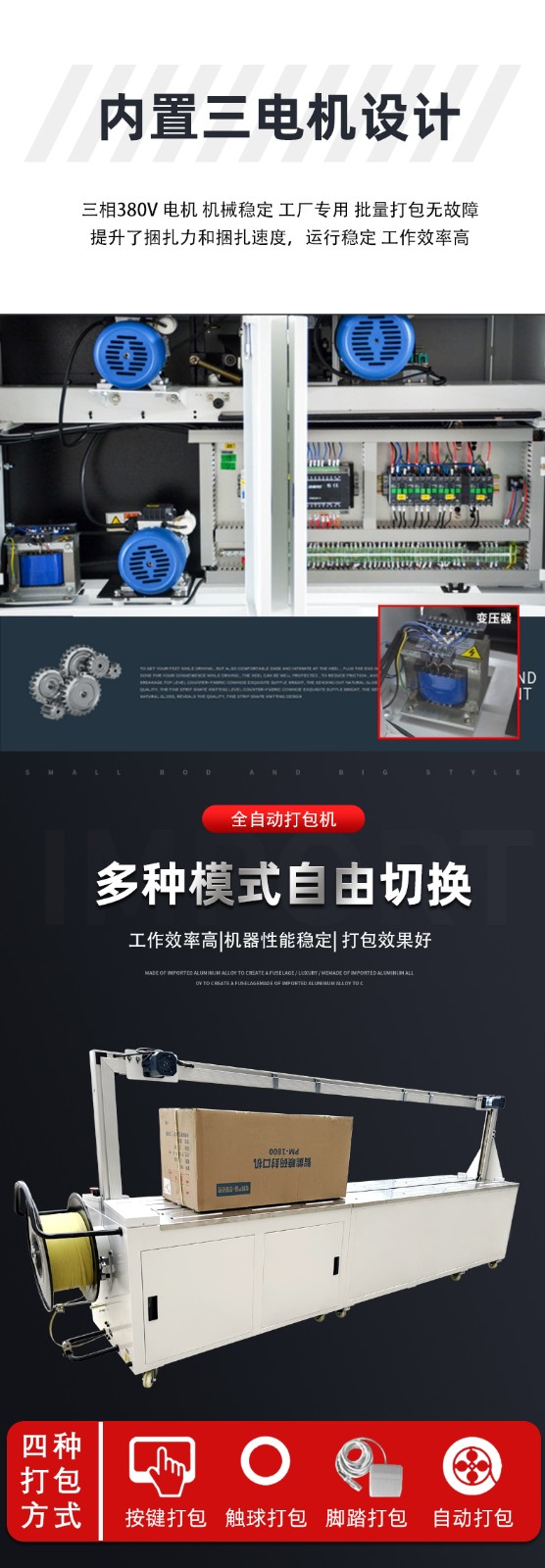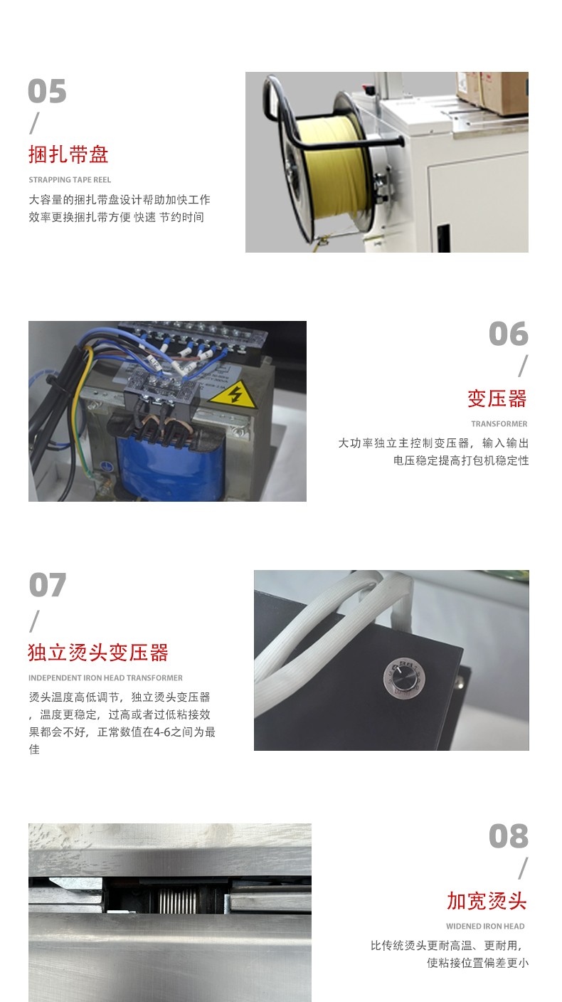 • 能夠精確控制打包帶的使用長(zhǎng)度,避免了人工打包時(shí)可能出現(xiàn)的打包帶浪費(fèi)現(xiàn)象,節(jié)約了包裝材料成本。