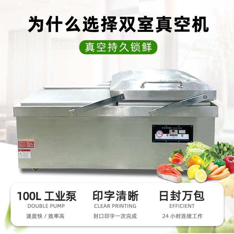 大型抽真空封口機商用平板雙室真空機 干濕兩用海鮮熟食品抽真空機 全自動雙室真空包裝機