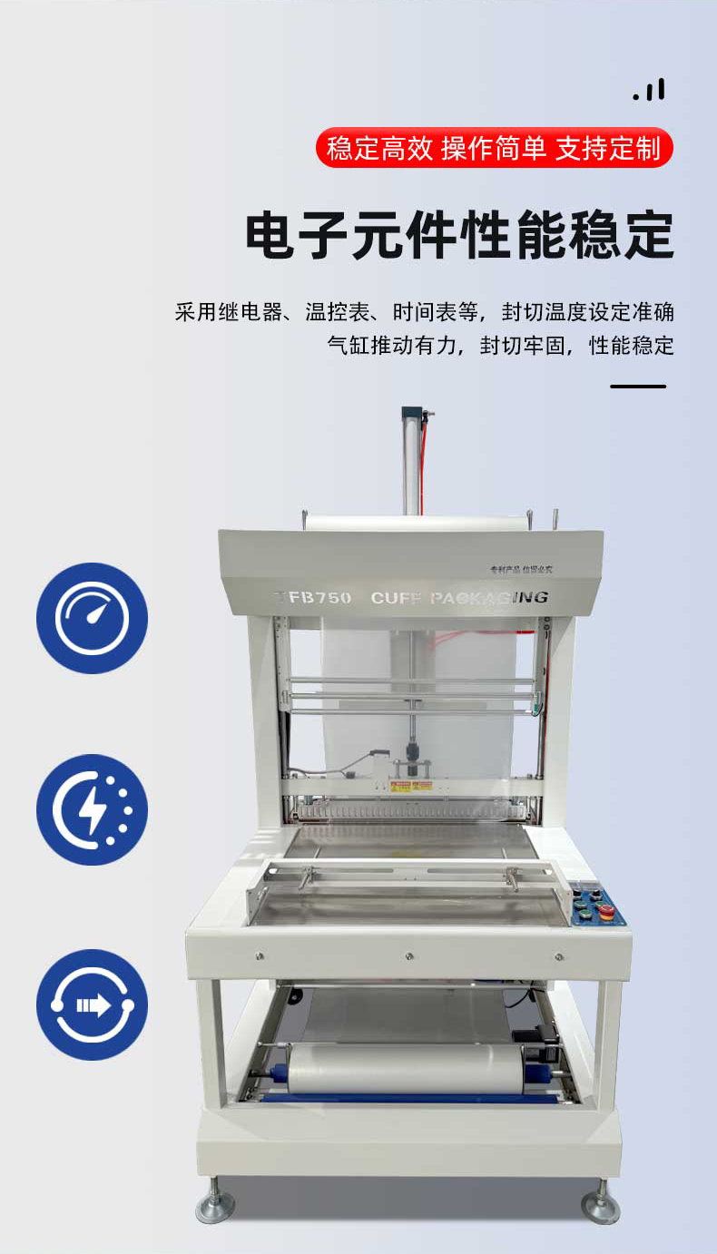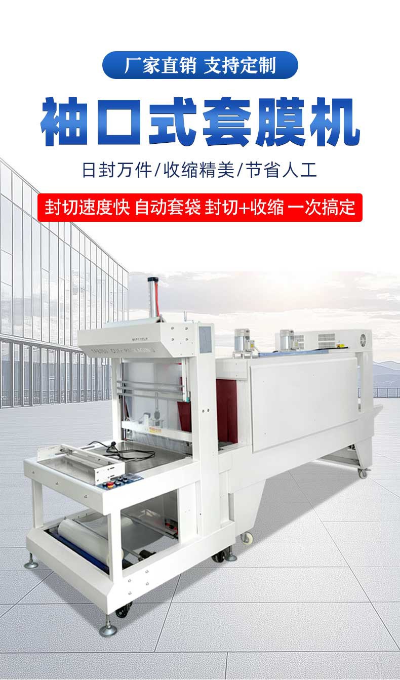 自動送膜與成型:設備通過送膜機構精準釋放熱收縮膜,如 PE、POF 材質等,并利用袖口成型裝置將膜材環繞產品形成 “袖口” 狀包裹,支持左 / 右進料、多排組合包裝等模式,可適配不同形狀的瓶罐或盒裝產品。 封切與密封:采用恒溫封刀技術,如抗粘耐高溫合金刀片,在設定溫度與壓力下完成封口,確保密封牢固且不粘刀、不開裂。部分機型配備 PLC 控制系統,可實時調節封切時間和壓力,以適配不同膜材厚度。 熱收縮定型:封切后的產品進入熱收縮區,通過高溫熱風循環系統使膜材均勻收縮,緊密貼合產品輪廓,例如采用螺旋風道設計,