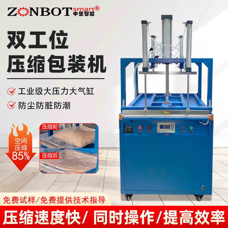 雙工位壓縮封口機:兩個工位可同時作業,一邊封口時另一個可放件 / 取件,適合中小批量、多規格產品(如多口味食品、電子元件袋),效率比單工位高 50%-80%。