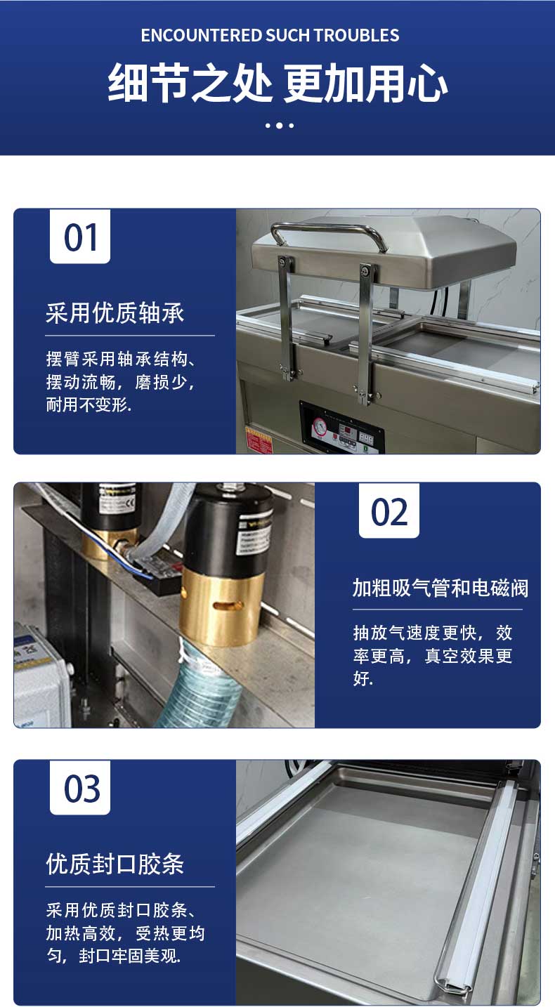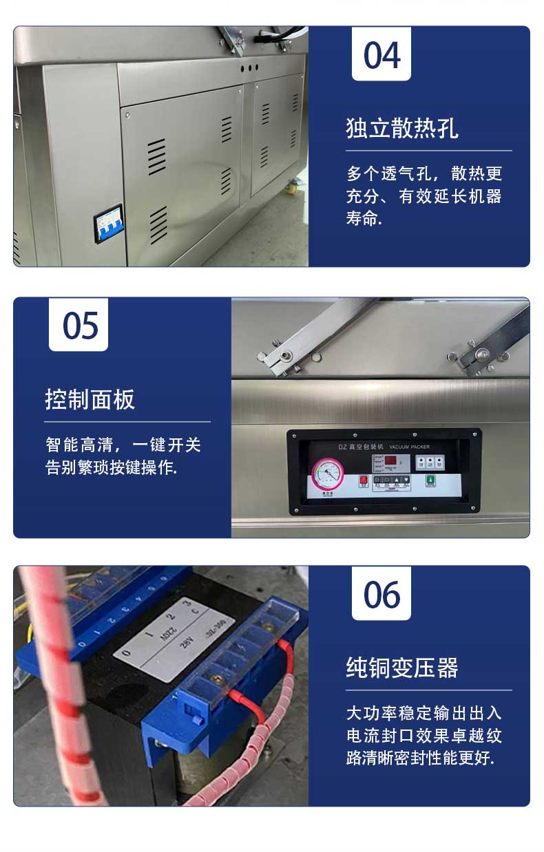操作上搭載微電腦控制系統,一鍵設定真空時間、封口時間,無需專業培訓即可上手,降低人工成本。除了帶液食品,還可兼容堅果、干貨、五金電子元件等固體產品包裝,一機多用適配多品類生產需求。