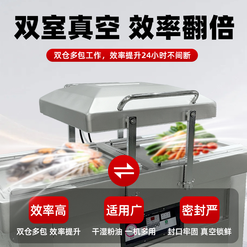 雙室真空機商用大型食品包裝機 全自動雙倉抽真空熟食打包封口機