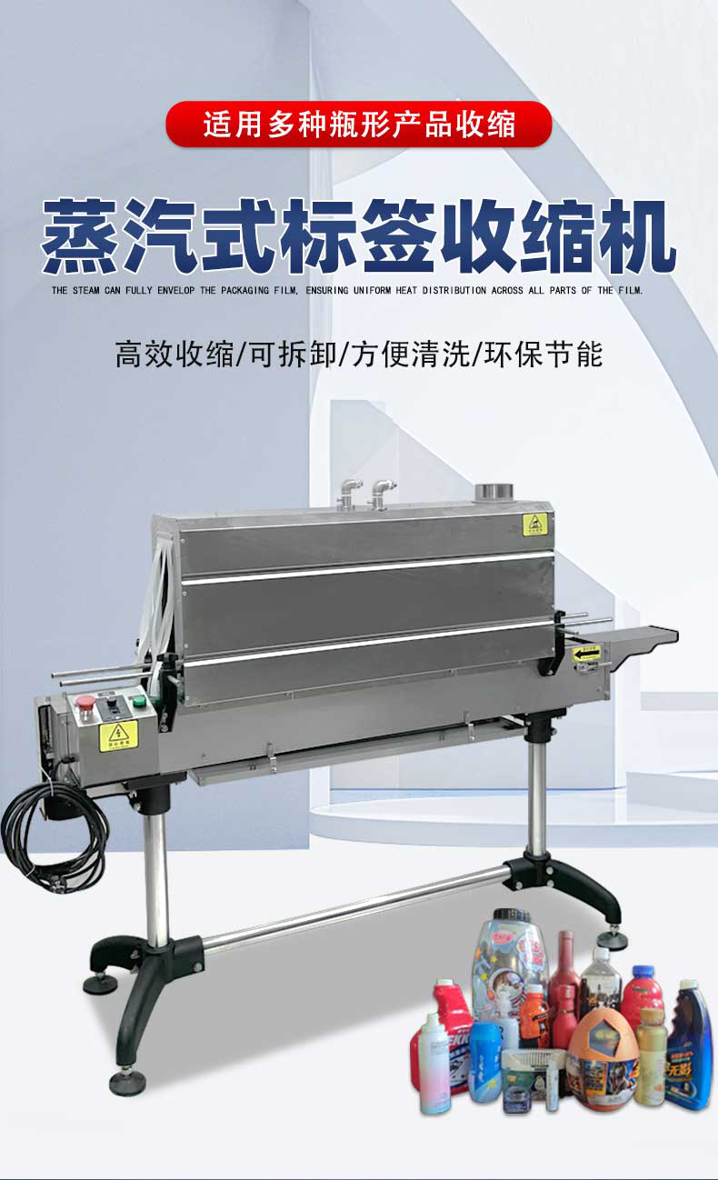 蒸汽收縮機是一種利用蒸汽熱能使包裝材料收縮,從而緊密貼合被包裝物品的設備。蒸汽收縮機通過將水加熱產生蒸汽,蒸汽在一定壓力下噴射到覆蓋在被包裝物品上的收縮膜上。收縮膜受熱后迅速收縮,緊緊包裹住物品,達到固定、保護物品以及美化包裝的目的。能快速產生大量蒸汽,使包裝膜迅速收縮貼合產品,可提高生產效率。蒸汽分布均勻,確保包裝膜在產品各個部位都能實現一致的收縮效果,包裝更加美觀、牢固。適用性強可用于 PVC、POF、PP 等多種常見的熱收縮膜,能適應盒子、瓶子等規則形狀以及其他不規則形狀產品的包裝。操作簡便設備操作