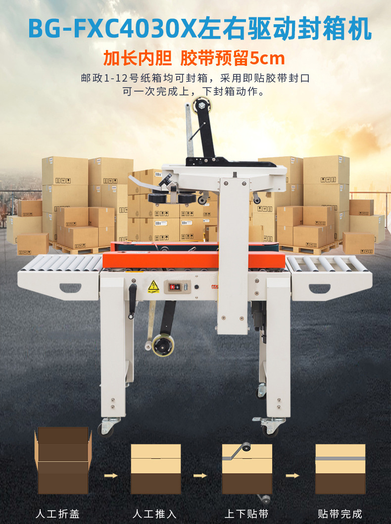 FXC4030X普通款封箱機(jī) 紙箱打包器 自動(dòng)封箱機(jī) 飛機(jī)盒封箱機(jī)