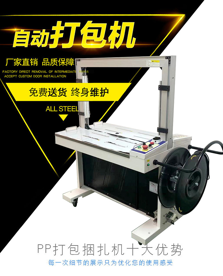 MH-301A全自動免扣式打包機電商快遞專用pp帶紙箱捆扎配套封箱機