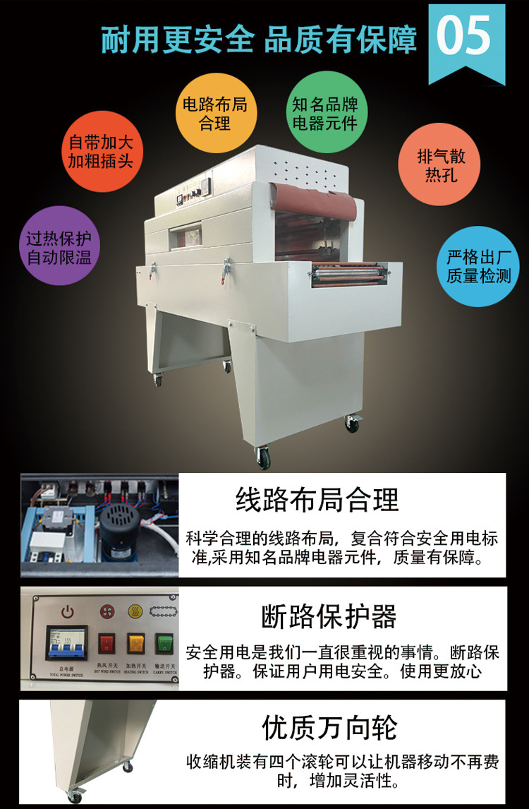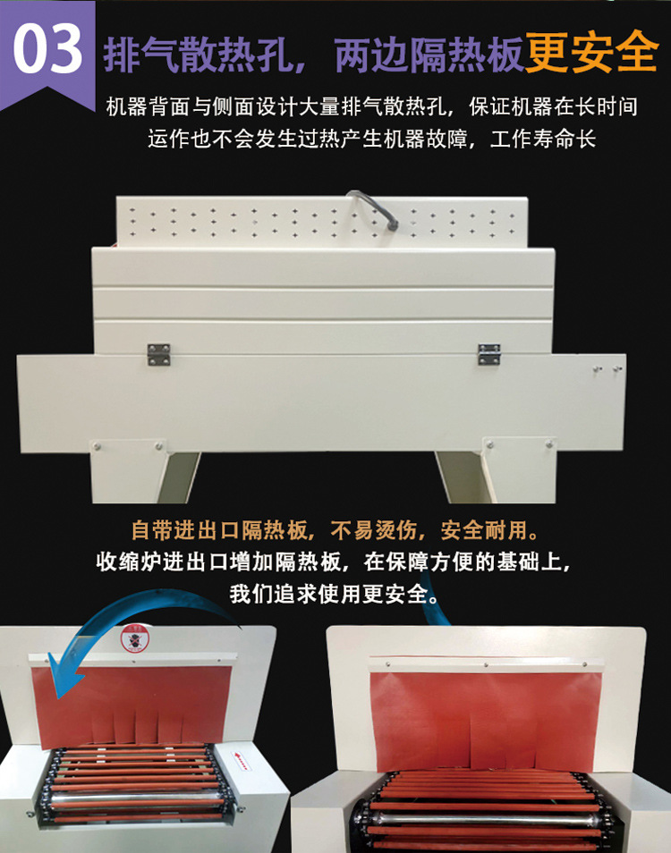 熱收縮機采用的進口材料,保證了產品的質量和性能,使您的產品在收縮包裝后,更耐用、更美觀,更具市場競爭力。