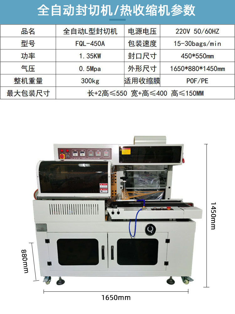 全自動L型封切機采用環保材料制成,無污染、低噪音,既能降低使用成本,又能滿足綠色環保要求。讓您的企業形象更上一層樓!