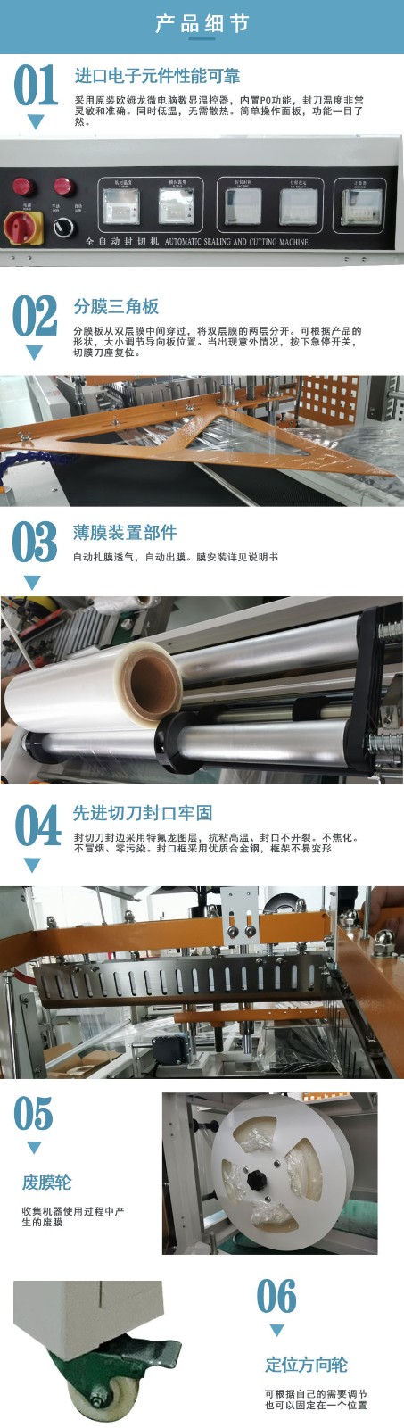 全自動L型封切機采用進口線性導軌、高性能馬達和臺灣精密光電傳感器等核心部件,確保機器運行穩定,封切速度高達每秒鐘12張,輕松滿足各類包裝需求。