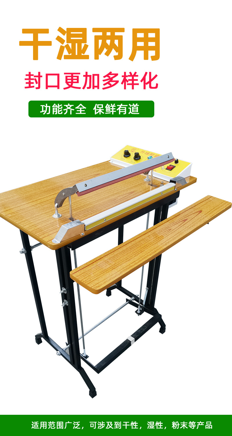 腳踏封口機利用電氣脈沖技術,使原有的工作時間從2-4秒縮短為0.2秒,是一種投資少,效益高,封口長度長,操作簡單,含專利的高效益封口設備,能廣泛用于食品,醫藥,土特產,電器軟件,工廠,商店,服務行業。
