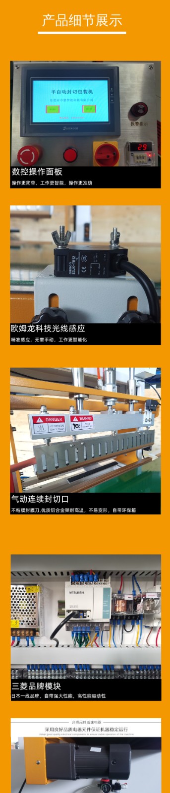 全自動封切機是一款全自動無人化操作封切機,廣泛用于批量生產包裝的流水作業,工作效率高,自動送膜打孔裝置和手動調節的導膜系統以及手動調節的進料輸送平臺,適用不同寬度及高度的產品