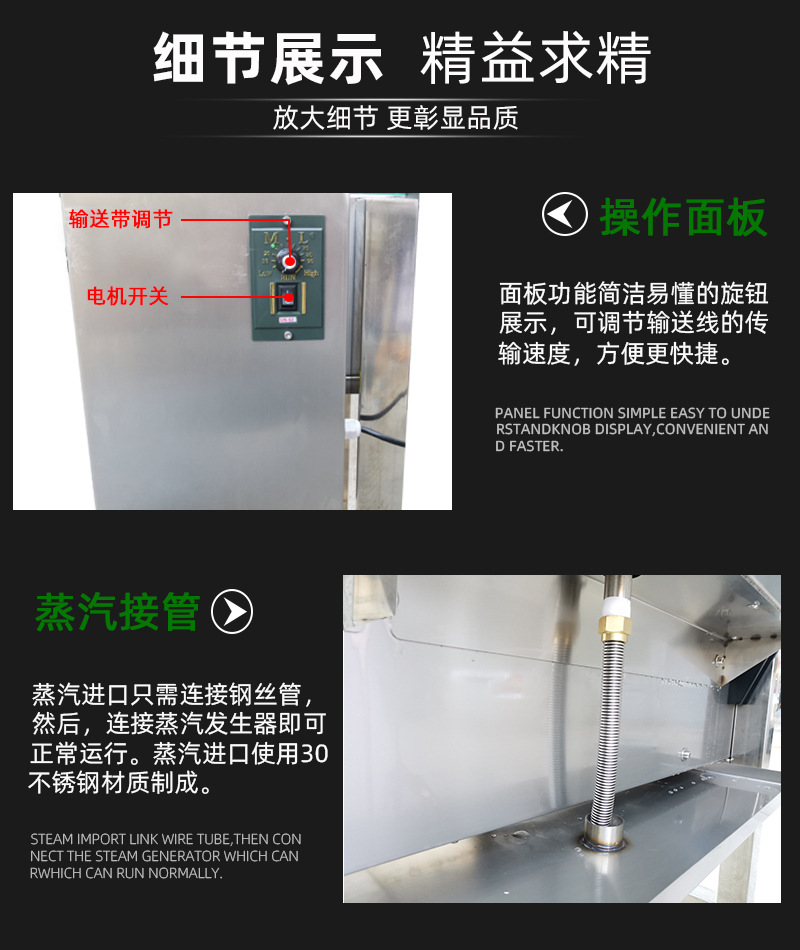 蒸汽式熱收縮機可以根據不同的生產速度來調節設備功率的大小,輸送帶采用無級調速,輸送速度可以任意調節。廣泛應用于大桶或小瓶裝礦泉水、純凈水;汽水和茶飲料等食品飲料行業,以及化妝品、洗發水和五