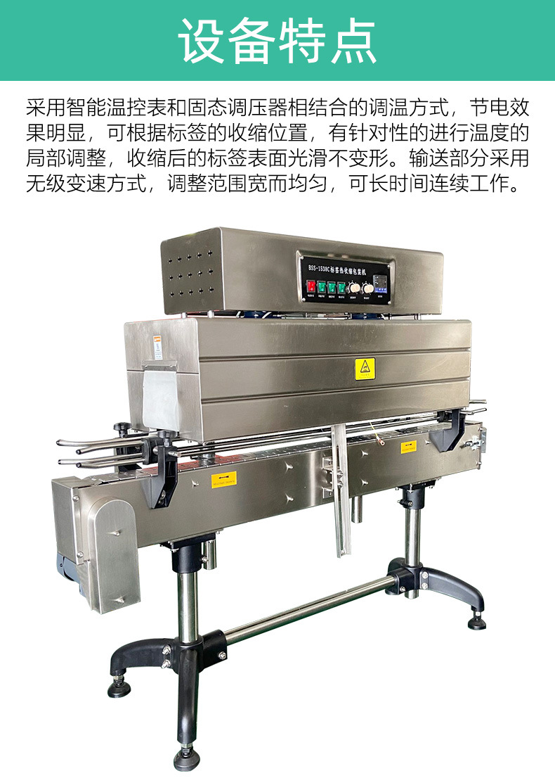 熱收縮機(jī)的主要應(yīng)用領(lǐng)域是食品、飲料、醫(yī)藥和化工行業(yè)。在這些行業(yè)中,熱收縮機(jī)可以用于各種包裝的收縮,如瓶裝、罐裝、袋裝等 熱收縮機(jī)的功能和工作原理 熱收縮機(jī)具有送料、襯料、封切、收縮、冷卻、定型的全自動(dòng)功能。熱收縮機(jī)采用國(guó)際先進(jìn)的薄膜恒溫?zé)岱饧夹g(shù),封口清晰牢固