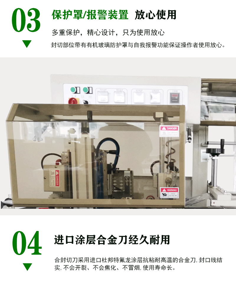 - 獨特的L型封切設計,使封切更牢固、緊密,提高封切效率,降低封切成本;