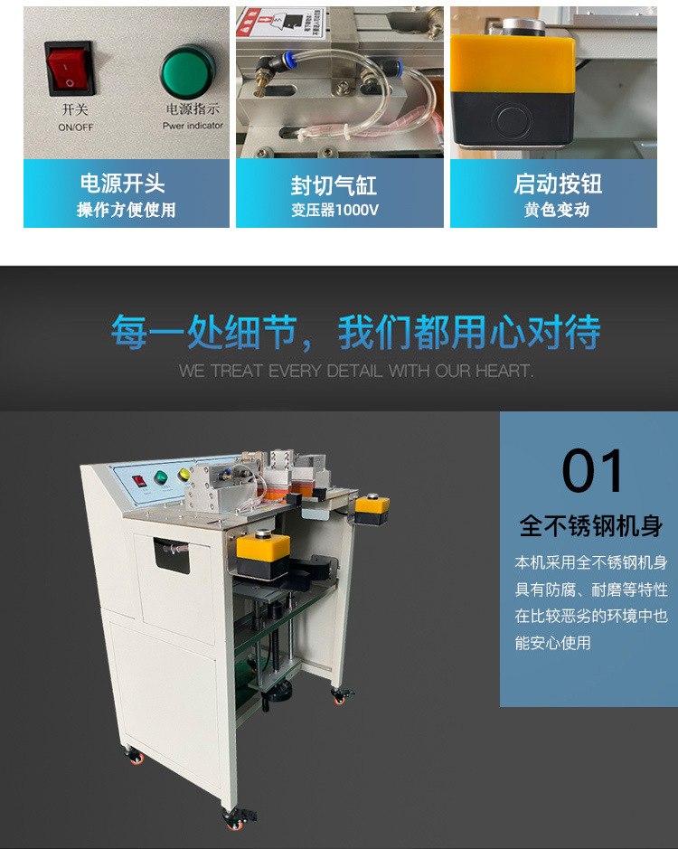 封切機是全自動無人化操作的包裝機,廣泛用于批量生產(chǎn)包裝的流水作業(yè),工作效率高,自動送膜打孔,自動套膜封切,自動卷取廢料;只需手動調節(jié)導膜系統(tǒng)以及手動調節(jié)進料輸送平臺,適用不同寬度及高度的產(chǎn)品。可與自動化包裝流水線配套使用,是產(chǎn)品封切熱收縮包裝的首選。